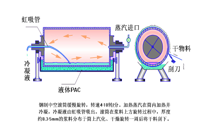 自然沉淀型聚合氯化鋁生產工藝:液態(tài)原料→自然沉降→滾筒干燥→成品